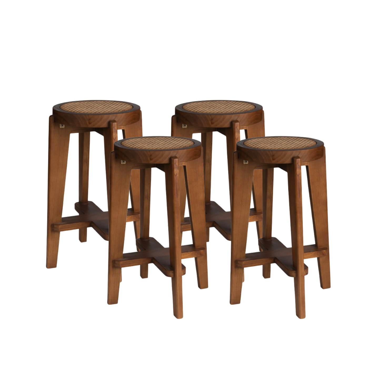 Ensemble de 4 Tabouret de bar en bois webbing DT.W.19. – Brun foncé